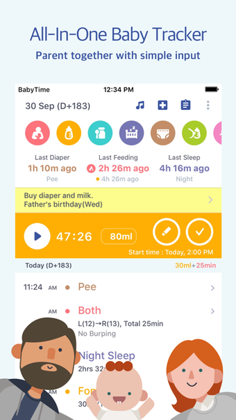 iPhone용 BabyTime 기록 분석 정보